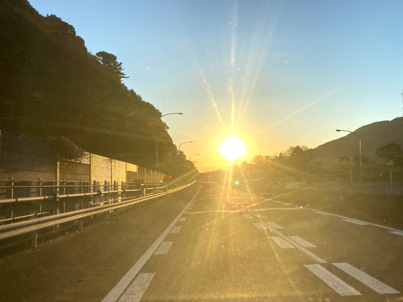 大阪を朝発でこの時期に奥美濃を目指すとちょうど名神の大垣辺りできれいに朝日が上がってきます。