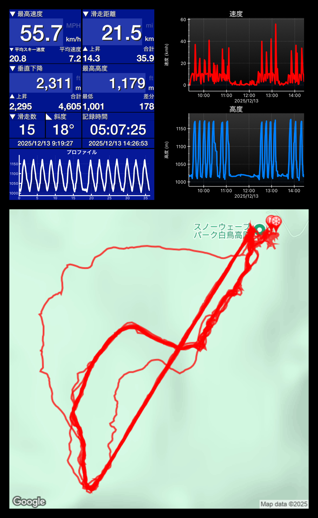 この日のSki Tracks
