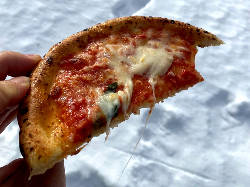 雪上で食べる焼き立てピザ最高~!