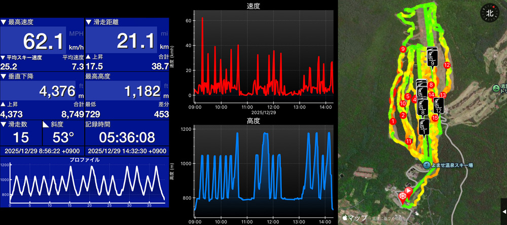 午前中は圧雪バーンの幅が広くてカービングするには調子良かったです。