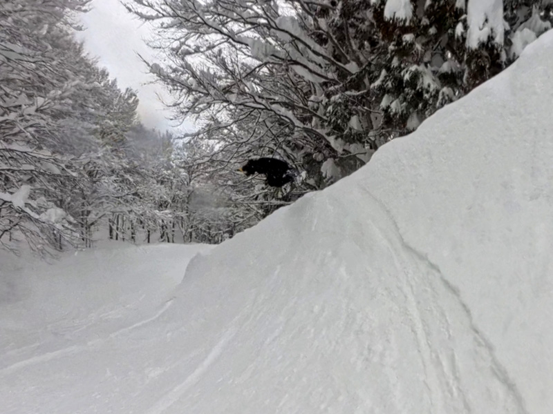 パウダーが深いと思って長い板をチョイスしたけど、それでもかなり減速させられました。