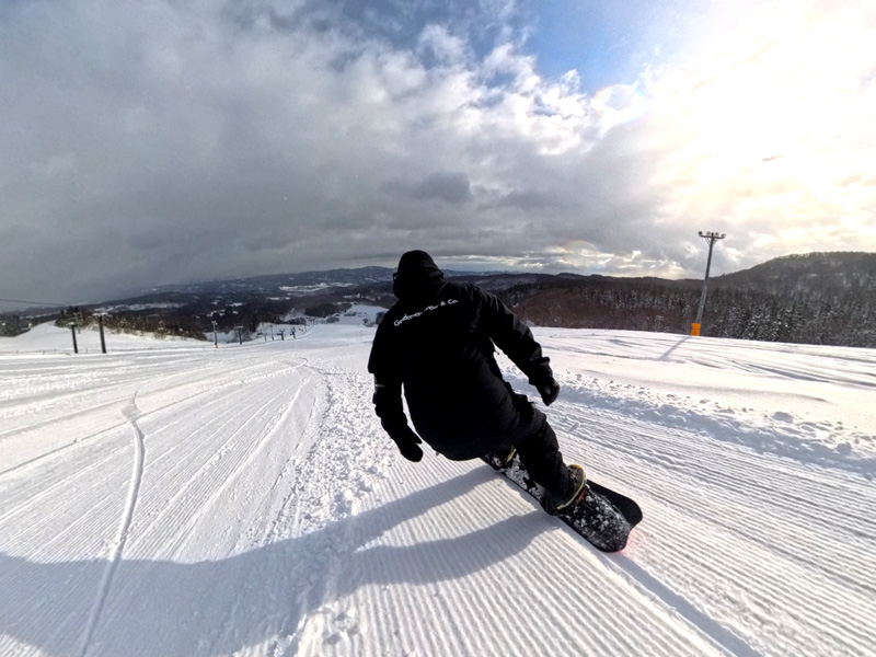 こっちもきれいに圧雪がかかってて、まだそこまでラインが入っていなかったので圧雪がきれいでした。