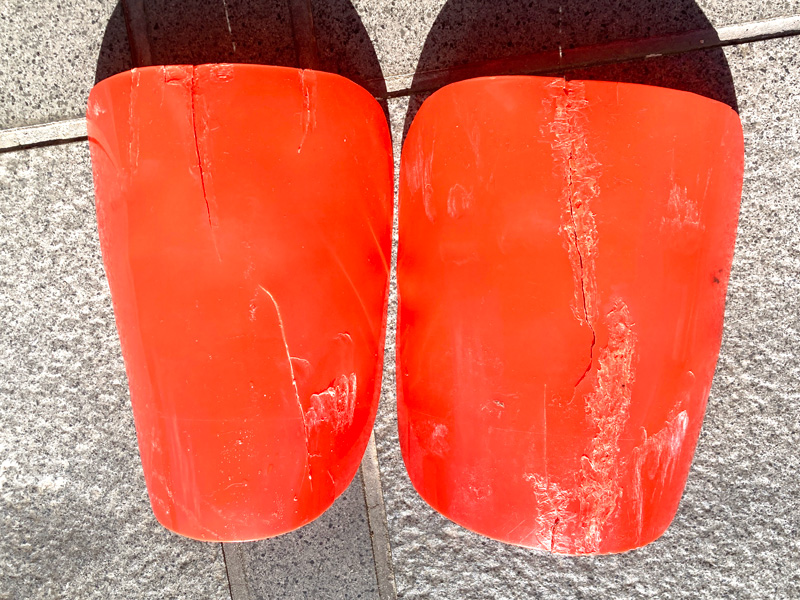 余ったカラーコーンの端切れはプラスチックの熱成形修理する時の素材として使っています。